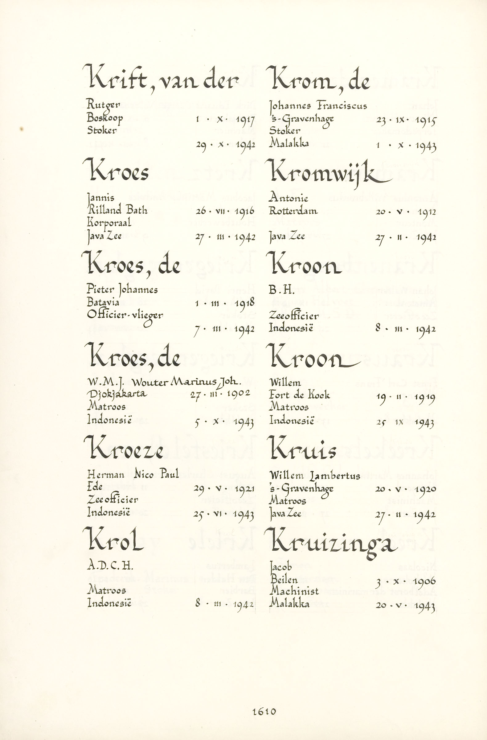 Willem Kroon Geboortedatum: 19-02-1919 Geboorteplaats: Fort de Kock Datum van overlijden: 25-09-1943 Plaats van overlijden: Hindato (Thailand) Beroep: Matroos Groep: Koninklijke Marine Pagina: 1610 Reactie toevoegen JavaScript moet ingeschakeld zijn om dit formulier te kunnen gebruiken. Comment Over tekstopmaak Platte tekst Geen HTML toegestaan. Regels en alinea's worden automatisch gesplitst. Web- en e-mailadressen worden automatisch naar links omgezet. Laat dit veld leeg blader download Permalink