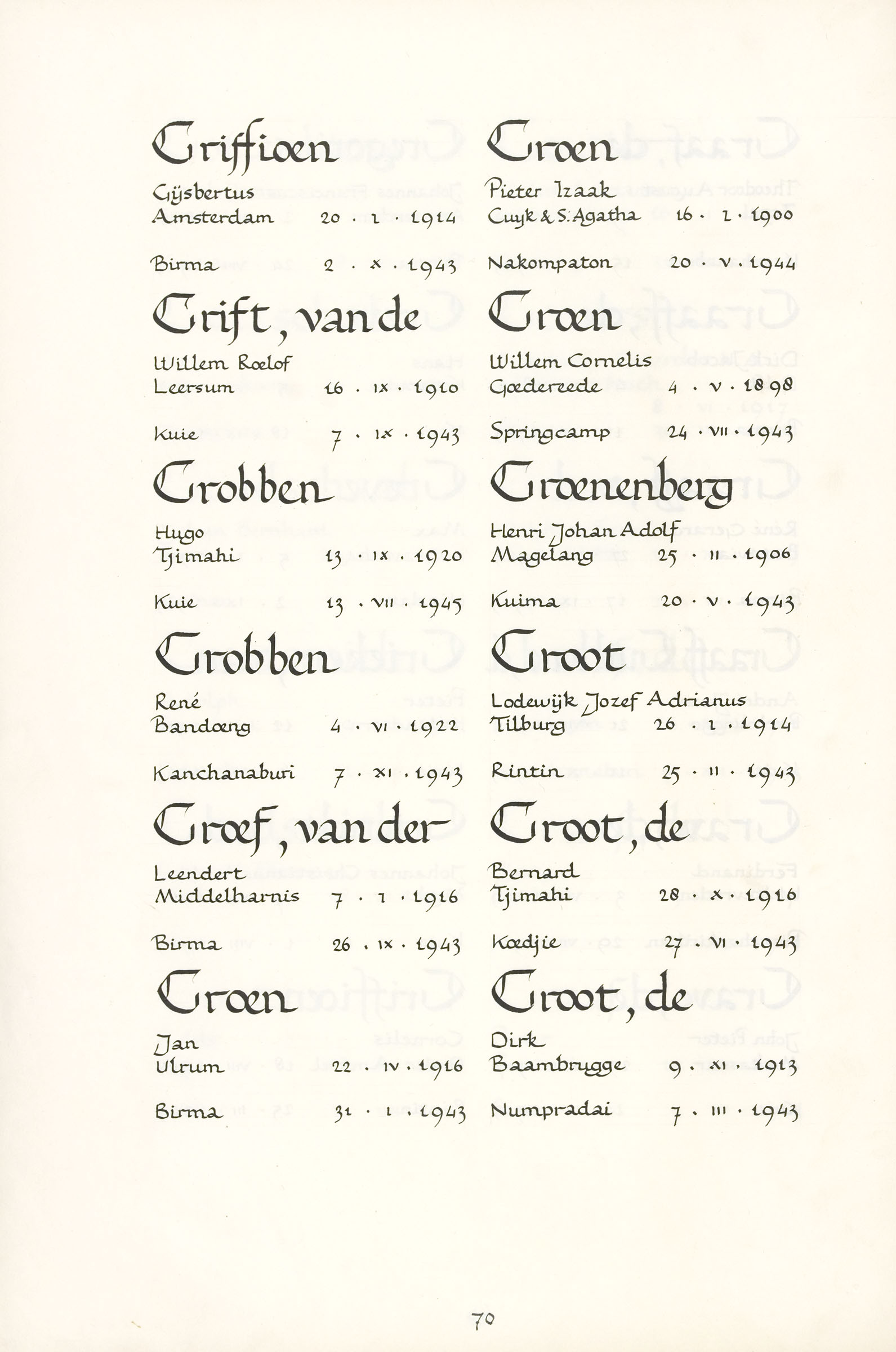 Willem Cornelis Groen Geboortedatum: 04-05-1898 Geboorteplaats: Goedereede Datum van overlijden: 24-07-1943 Plaats van overlijden: Springcamp Beroep: Kapitein artillerie Groep: Koninklijk Nederlands-Indisch Leger en Indisch Verzet Pagina: 70 Reactie toevoegen JavaScript moet ingeschakeld zijn om dit formulier te kunnen gebruiken. Comment Over tekstopmaak Platte tekst Geen HTML toegestaan. Regels en alinea's worden automatisch gesplitst. Web- en e-mailadressen worden automatisch naar links omgezet. Laat dit veld leeg blader download Permalink
