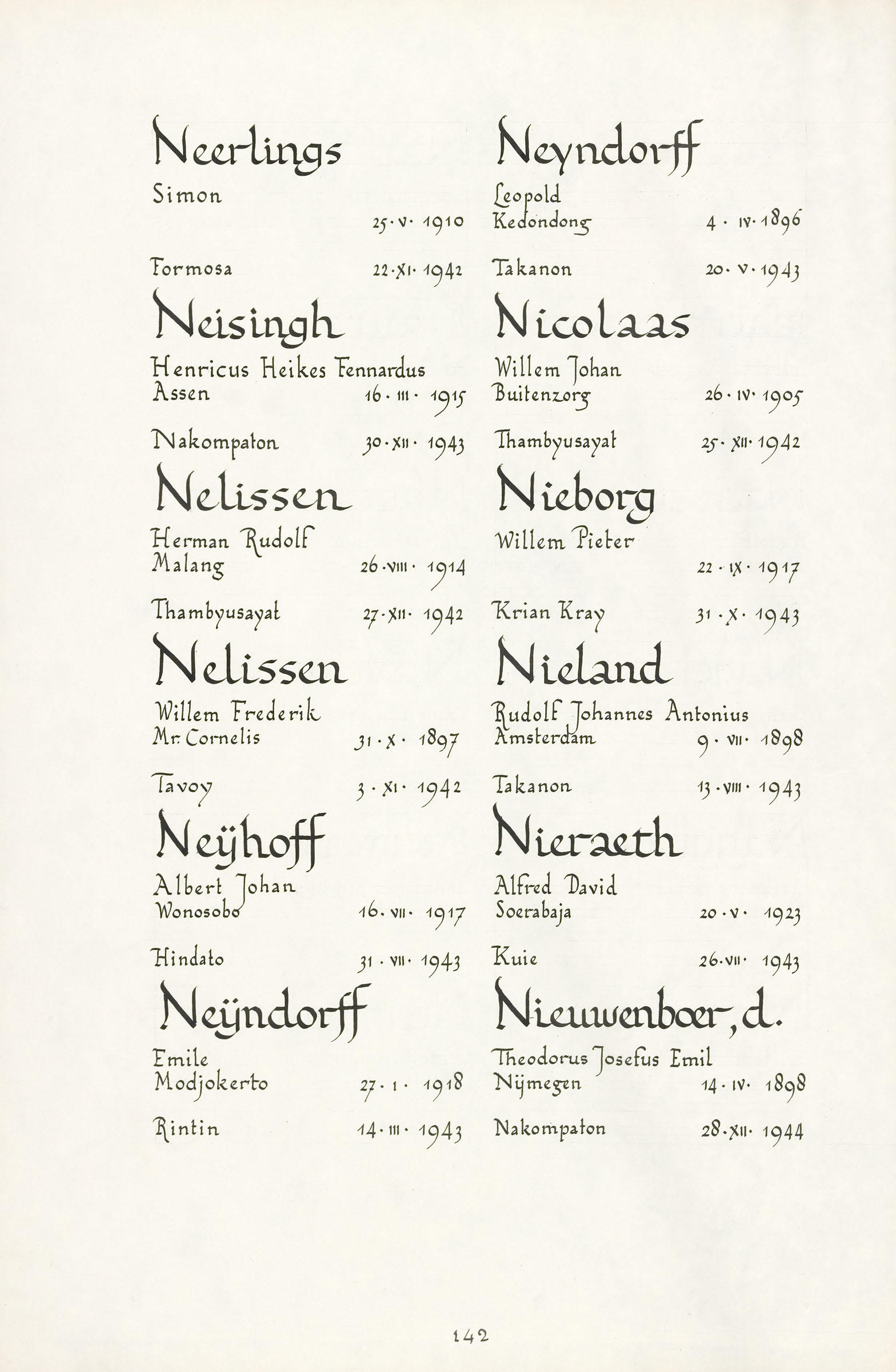 Willem Frederik Nelissen Geboortedatum: 31-10-1897 Geboorteplaats: Meester Cornelis (Java) Datum van overlijden: 03-11-1942 Plaats van overlijden: Tavoy (Birma) Beroep: Majoor Groep: Koninklijk Nederlands-Indisch Leger en Indisch Verzet Pagina: 142 Rob Barlage QPO Rob Barlage QPO Lukassen Lucassen Reactie toevoegen JavaScript moet ingeschakeld zijn om dit formulier te kunnen gebruiken. Comment Over tekstopmaak Platte tekst Geen HTML toegestaan. Regels en alinea's worden automatisch gesplitst. Web- en e-mailadressen worden automatisch naar links omgezet. Laat dit veld leeg blader download Permalink