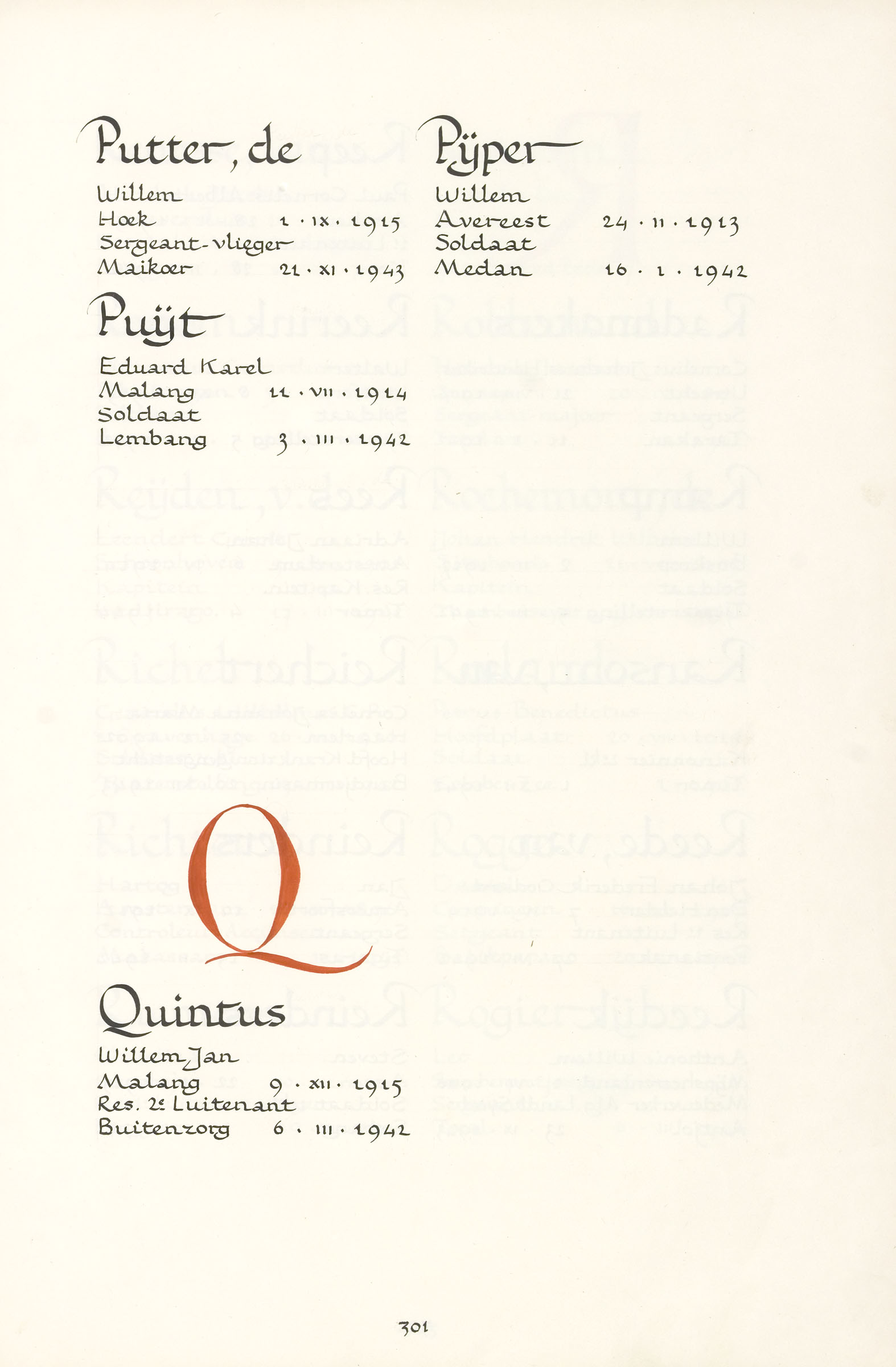 Willem Jan Gerard Quintus Geboortedatum: 09-12-1915 Geboorteplaats: Malang (Java) Datum van overlijden: 06-03-1942 Plaats van overlijden: Buitenzorg Beroep: Res. 2e Luitenant Groep: Koninklijk Nederlands-Indisch Leger en Indisch Verzet Pagina: 301 Reactie toevoegen JavaScript moet ingeschakeld zijn om dit formulier te kunnen gebruiken. Comment Over tekstopmaak Platte tekst Geen HTML toegestaan. Regels en alinea's worden automatisch gesplitst. Web- en e-mailadressen worden automatisch naar links omgezet. Laat dit veld leeg blader download Permalink