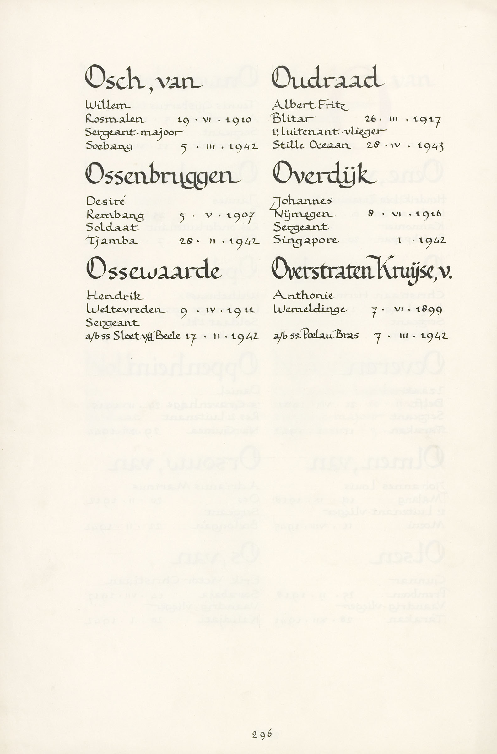 Willem van Osch Geboortedatum: 19-06-1910 Geboorteplaats: Rosmalen Datum van overlijden: 05-03-1942 Plaats van overlijden: Soebang (Java) Beroep: Sergeant-majoor Groep: Koninklijk Nederlands-Indisch Leger en Indisch Verzet Pagina: 296 Reactie toevoegen JavaScript moet ingeschakeld zijn om dit formulier te kunnen gebruiken. Comment Over tekstopmaak Platte tekst Geen HTML toegestaan. Regels en alinea's worden automatisch gesplitst. Web- en e-mailadressen worden automatisch naar links omgezet. Laat dit veld leeg blader download Permalink