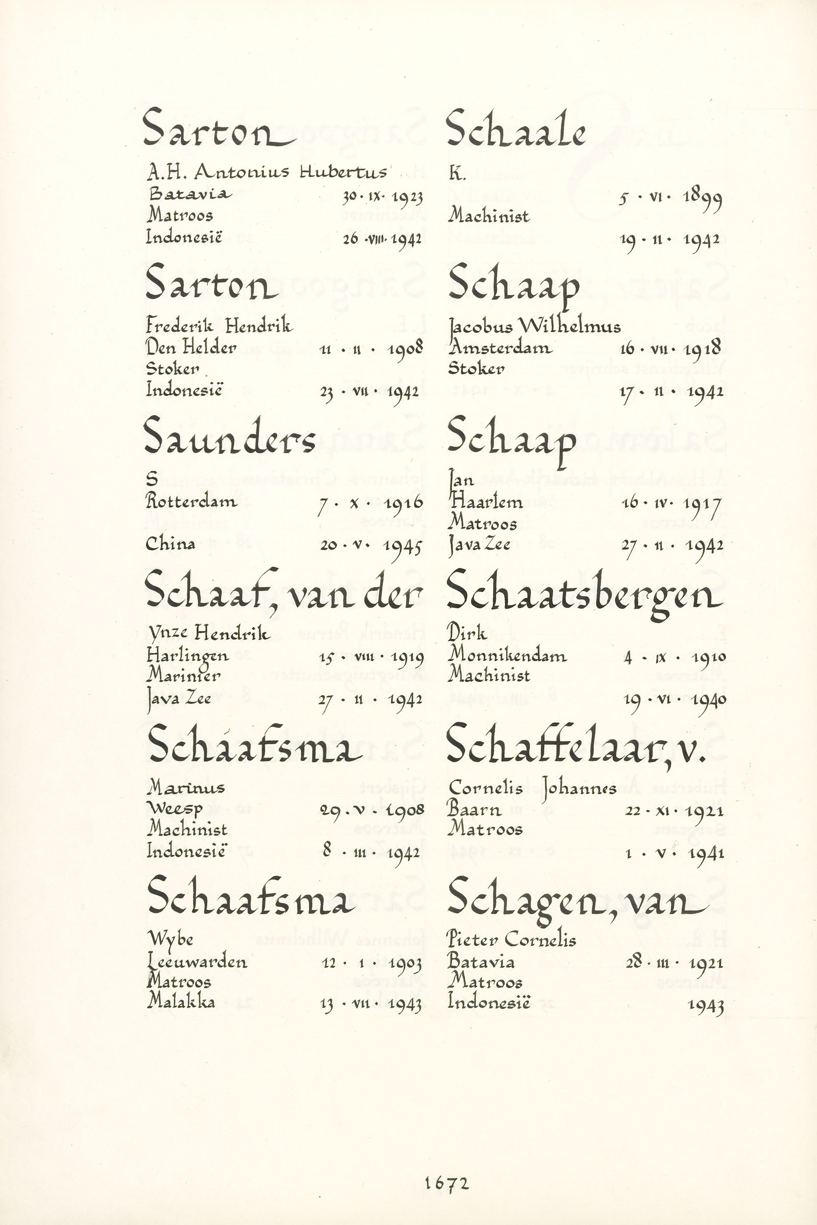 Ynze Hendrik van der Schaaf Geboortedatum: 15-08-1919 Geboorteplaats: Harlingen Datum van overlijden: 27-02-1942 Plaats van overlijden: Javazee Beroep: Marinier Groep: Koninklijke Marine Pagina: 1672 Pieke van der Schaaf Reactie toevoegen JavaScript moet ingeschakeld zijn om dit formulier te kunnen gebruiken. Comment Over tekstopmaak Platte tekst Geen HTML toegestaan. Regels en alinea's worden automatisch gesplitst. Web- en e-mailadressen worden automatisch naar links omgezet. Laat dit veld leeg blader download Permalink